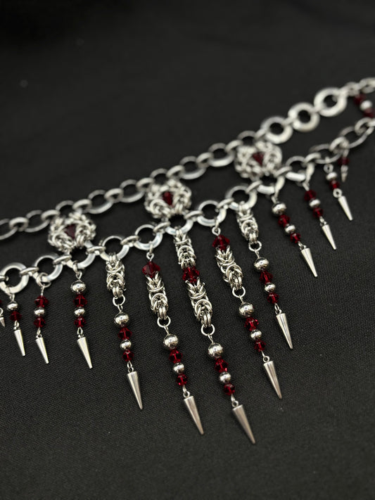 Tous les bijoux sont en acier inoxydable, choisi pour sa haute qualité et sa résistance, ainsi qu’en étain sans plomb. J’utilise également des cristaux Preciosa et/ou Primero, ainsi que des perles en verre, des pierres naturelles et synthétiques.